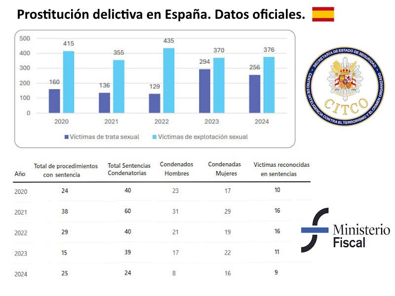 Según el Centro de Inteligencia contra el Terrorismo y el Crimen Organizado (CITCO), en 2024 se detectaron 376 víctimas de explotación sexual en operativos policiales, mientras que el Consejo General del Poder Judicial (CGPJ) contabilizó tan solo 9 víctimas reconocidas judicialmente en ese mismo año al final de los procesos judiciales.