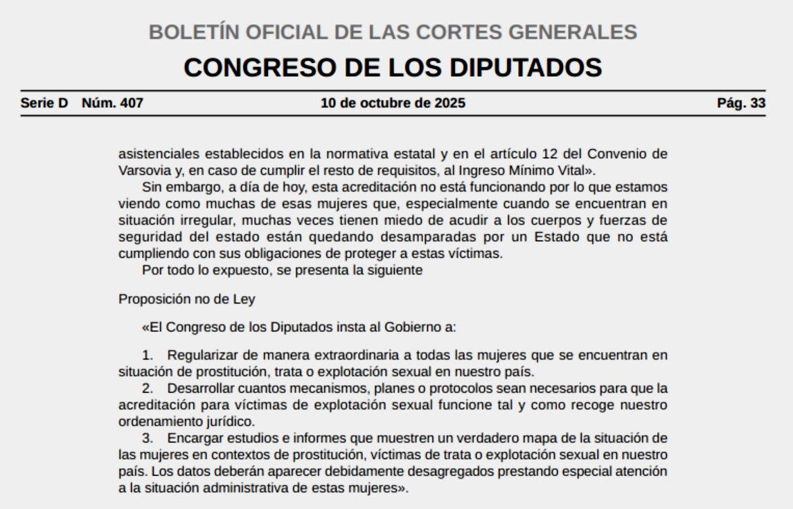 Ambos delitos trata y explotación están tipificados en España en el artículo 177 bis (trata de seres humanos con fines de explotación sexual) y el artículo 187.1 (lucro delictivo de terceros) del Código Penal. El primer delito fue introducido en España hace 15 años y el segundo persiste sin discontinuidad desde 1848 nada menos. No hay un vacío legislativo alguno que justifique una medida excepcional como expone Podemos.StopAbolición también cuestiona la referencia al acuerdo de la Conferencia Sectorial de Igualdad de 27 de mayo de 2022, al amparo del artículo 47 del Real Decreto-ley 6/2022 que permitiría que administraciones u ONGs privadas acrediten la condición de víctima de trata. Nuestro colectivo advierte de que esta vía puede conllevar una pérdida de garantías y riesgo de arbitrariedad, al dejar la decisión en manos de entidades privadas que pueden dictaminar entrar en conflicto con sus propios intereses privados.